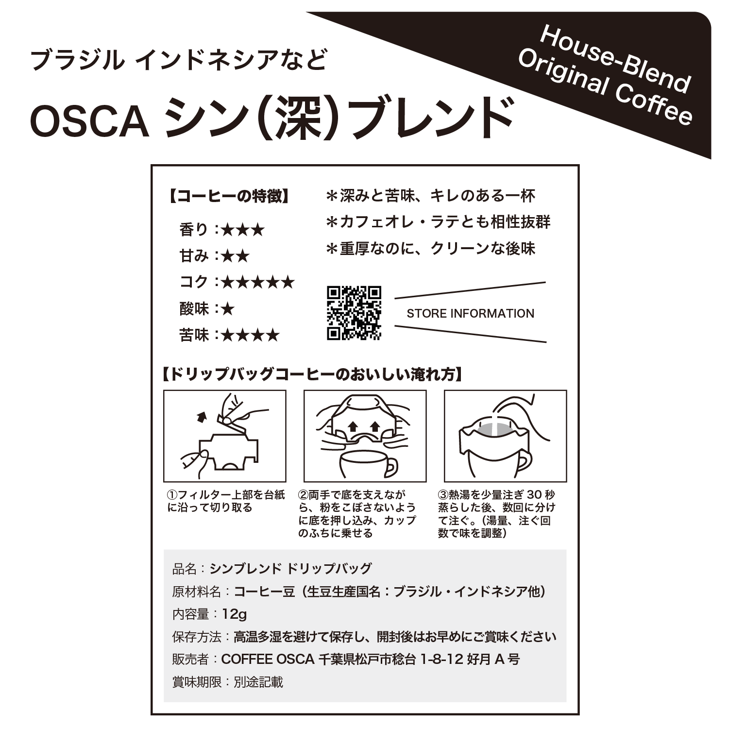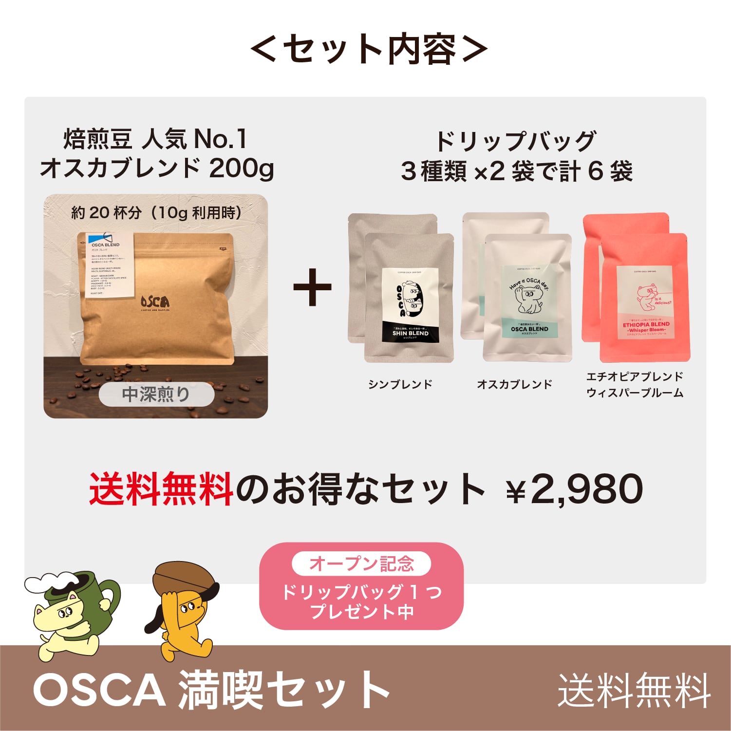 - オスカブレンドの焙煎豆または粉 200g(中深煎り)